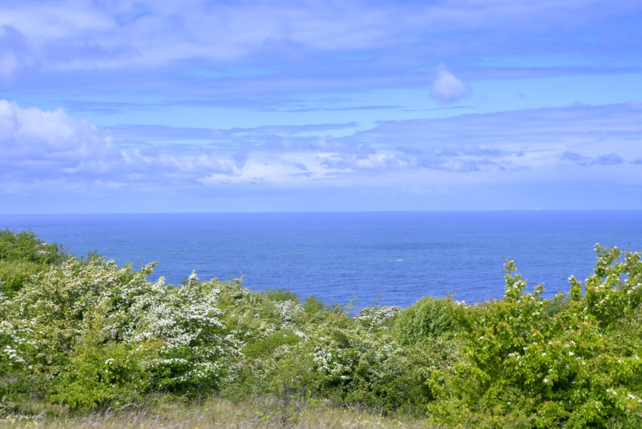 Nicht immer ohne Anstrengung. Der letzte Aufstieg, glaube ich, meinte meine Allerliebste. Zum Leuchtturm am Dornbusch. Es kam dann noch einer. Dafür ist das Konzert der Vögel unbeschreiblich fantastisch. Begleitet vom leisen Rauschen des Meeres. Und über uns blitzt der blaue Himmel zwischen den Wolken hindurch.